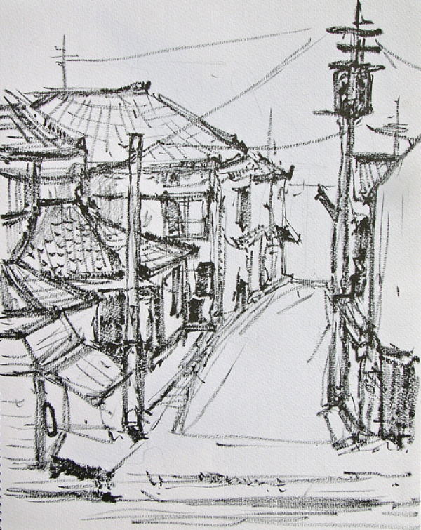 hs-030 庄内由良民宿の風景の想い出 B4大 2008.08.15 (筆ペン)
