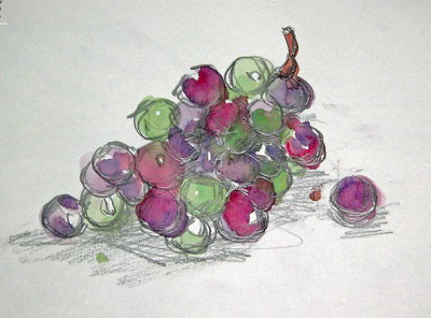 hs-034 葡萄 A4大 2008.09.17 (鉛筆、水彩)