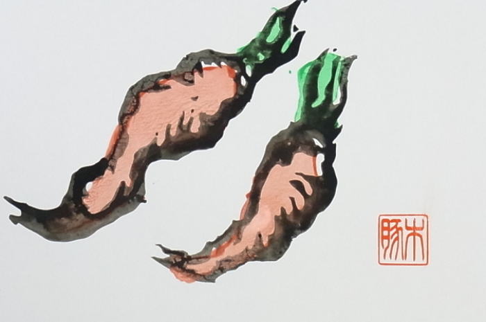 hs-071 曲がりの人参 ハガキ大 2010.12.29 (木版画)