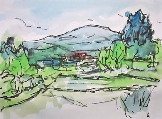 hs-157 早苗の頃(大江町三郷地区) A4大 2012.05.28 (筆ペン、水彩)