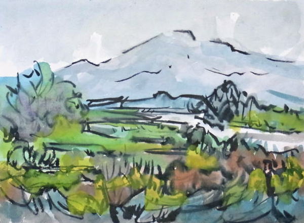 hs-175 最上川秋景 (河北町谷地) A4大 2012.10.17 (筆ペン、水彩)