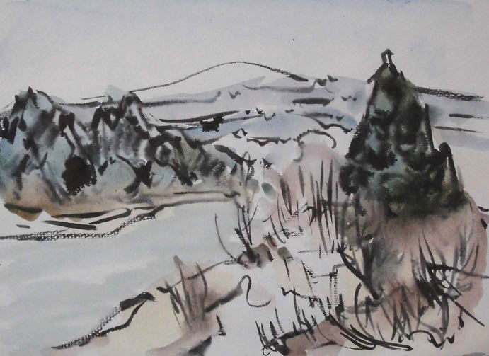 hs-289 最上川早春 A4大 2015.04.04 (筆ペン、水彩)