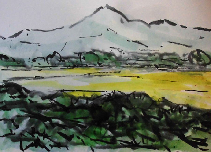 hs-339 田園風景 2016.09.14 (筆ペン、水彩)