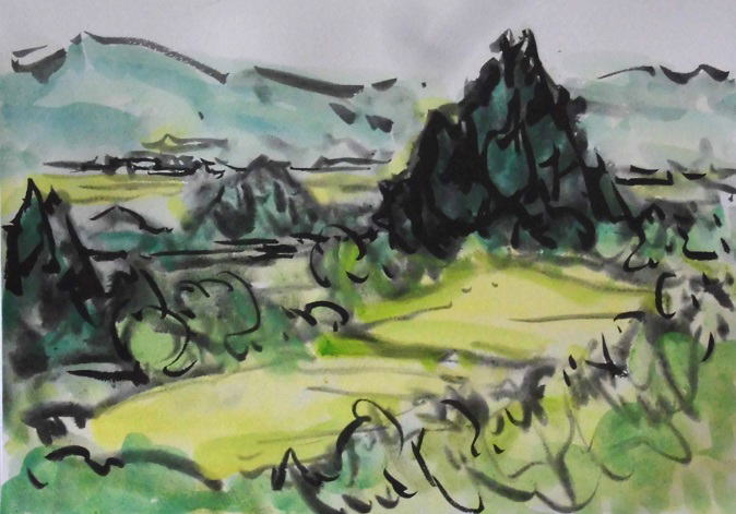 hs-344 実りの風景 2016.09.29 (筆ペン、水彩)