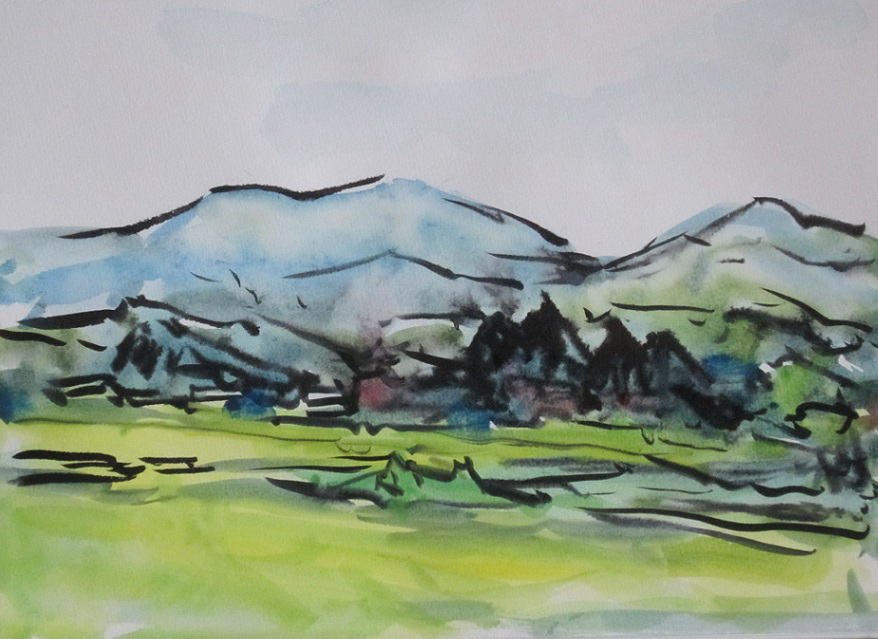 hs-355 秋・田園風景 2017.09.30 (筆ペン、水彩)