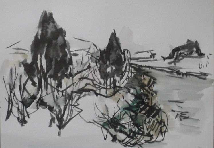 hs-381 春待つ三ヶ瀬 2018.03.15 (筆ペン、水彩)