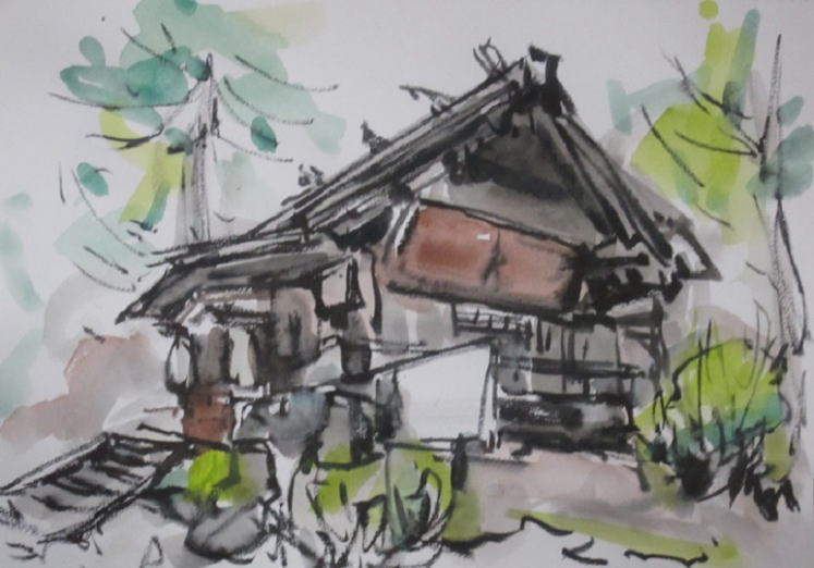 | hs-385 桜(はな)待つ建勲神社風景 2018.03.29 (筆ペン、水彩) |