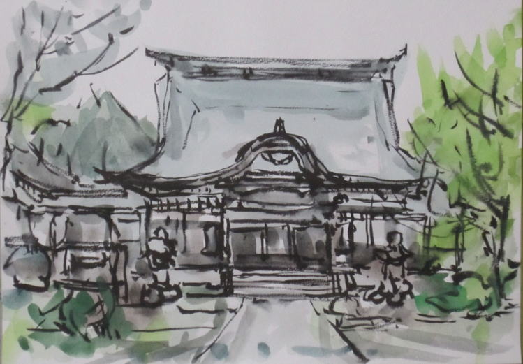 hs-417 盆待つ長松院 2018.08.12 (筆ペン、水彩)