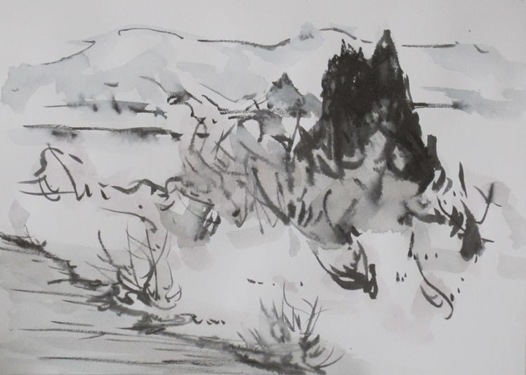hs-454 最上川雪景 2019.01.27 (筆ペン、水彩)