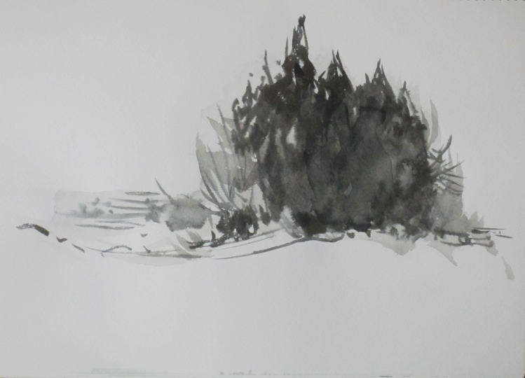 hs-456 雪のお月山神社 2019.02.18 (筆ペン、水彩)