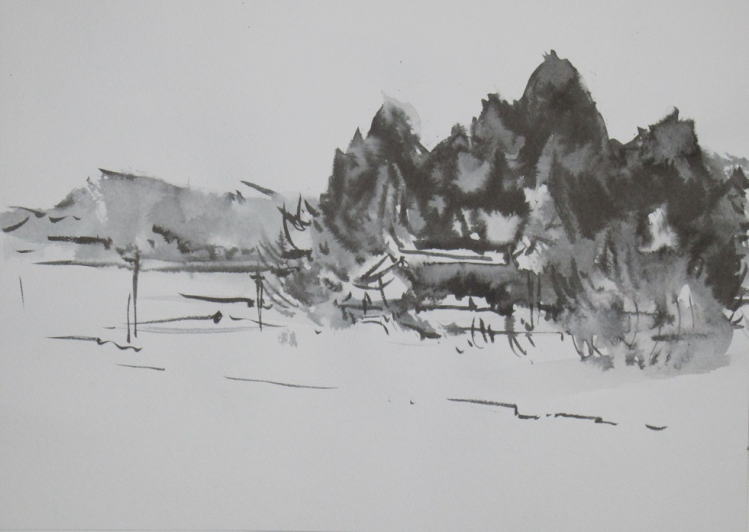 hs-458 春待つ雪原 2019.03.02 (筆ペン、水彩)