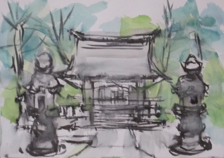 hs-480 蒼い沼山神社 2019.06.09 (筆ペン、水彩)
