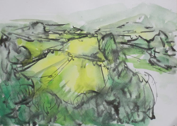 hs-489 実りの風景 2019.09.25 (筆ペン、水彩)
