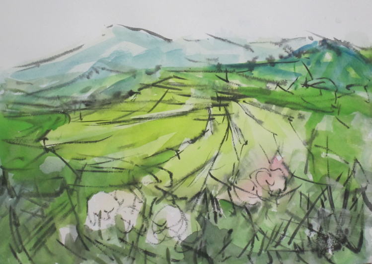 hs-491 実りの風景 2019.09.28 (筆ペン、水彩)