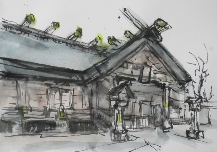 hs-493 福島郡山開成神社 2019.12.31 (筆ペン、水彩)