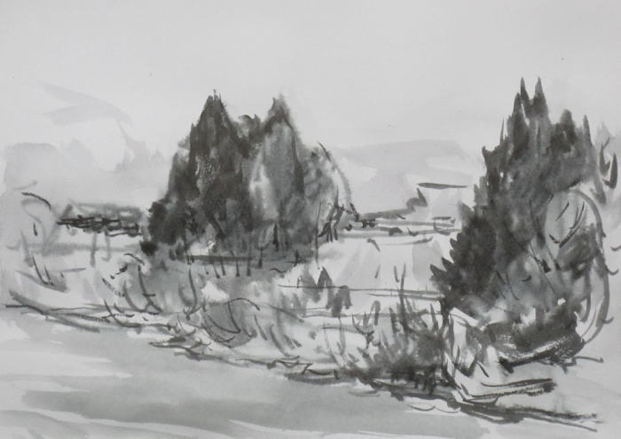hs-498 最上川雪景 2020.01.24 (筆ペン、水彩)