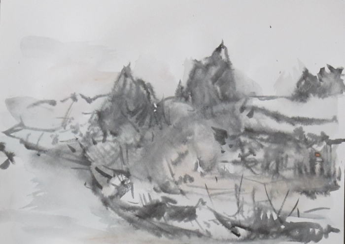 hs-501 最上川雪景 2020.03.06 (筆ペン、水彩)