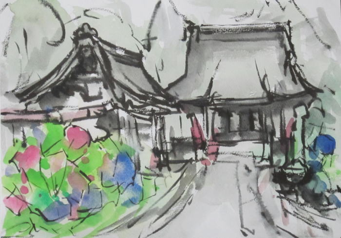 慈恩寺にある子安観音堂。この観音堂にアジサイの花がこんなに似合うとは。新たな発見。