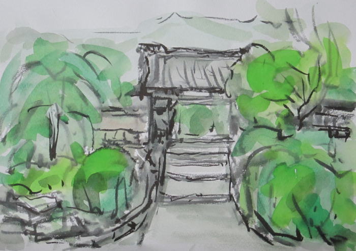 山形市岩波地区にある西行寺の山門風景。同寺は、最上三十三観音第7番「岩波」の御朱印所でもある。