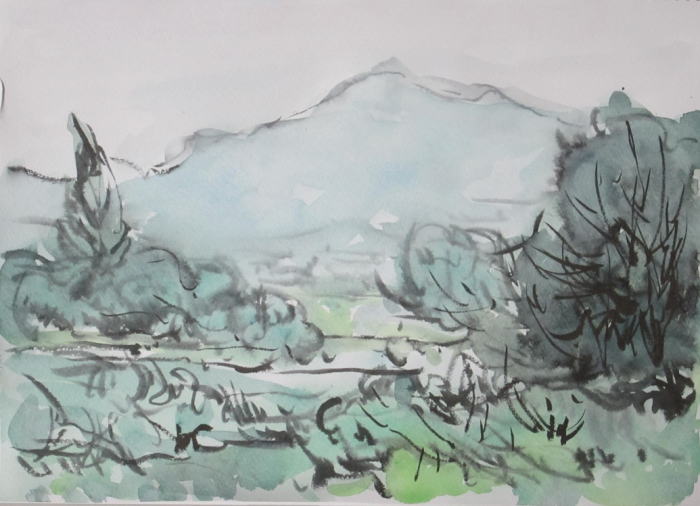 最上川河岸の風景をまとめてみた。遠方の山は面白山(おもしろやま)。小生若かりし頃、早春3月に登頂した。