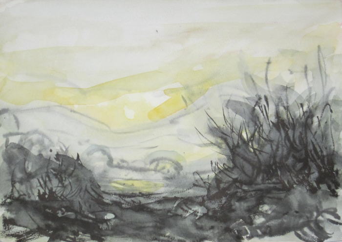 hs-620 朝もやの風景 2021.11.10 (筆ペン、水彩)