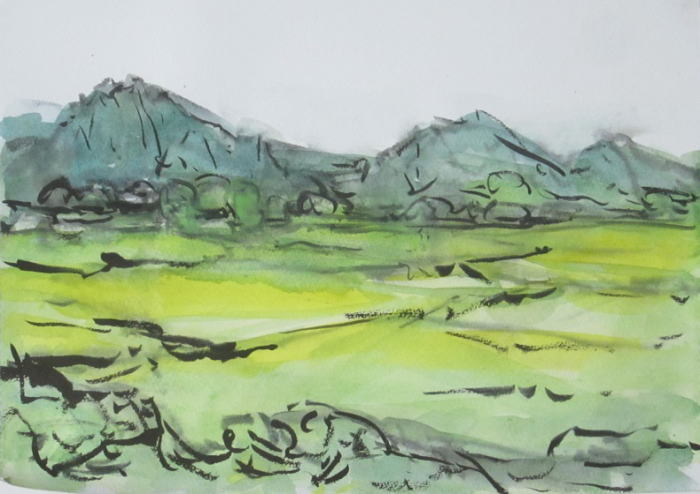 hs-670 夏の終わり 2022.08.30(筆ペン、水彩)