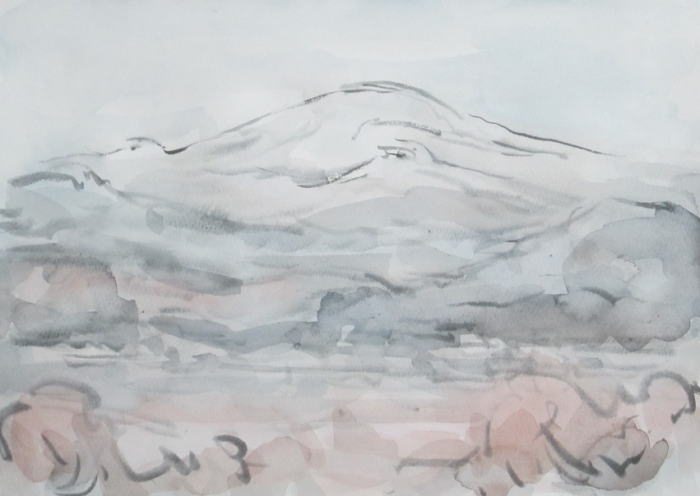hs-686 冠雪霊峰月山 2022.11.20(筆ペン、水彩)