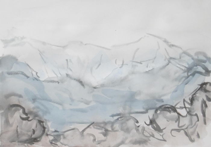 hs-688 冠雪朝日連峰 2022.11.26(筆ペン、水彩)