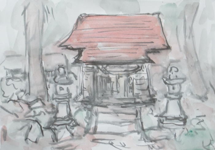 hs-689 雪待つ楯岡荷渡地蔵尊 2022.12.03(筆ペン、水彩)