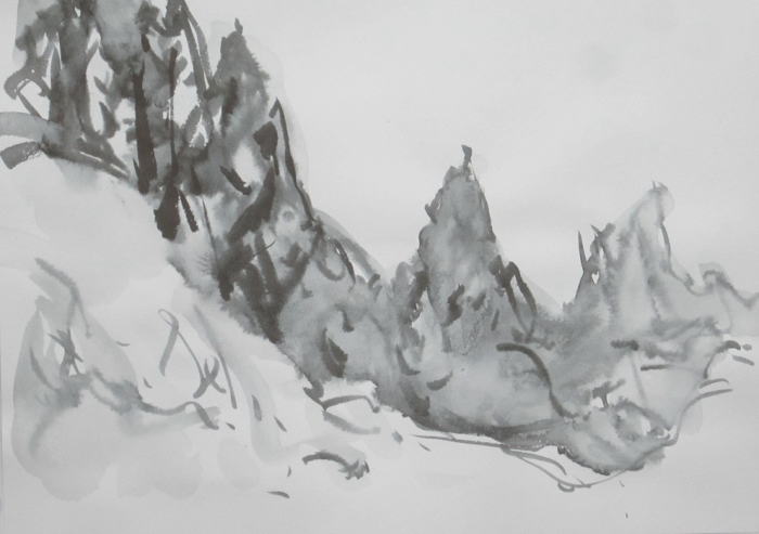 hs-693 雪止んで 2022.12.12(筆ペン、水彩)