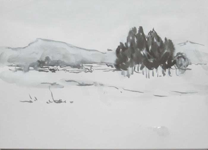 hs-710 雪止んで 2023.01.18 (筆ペン、水彩)