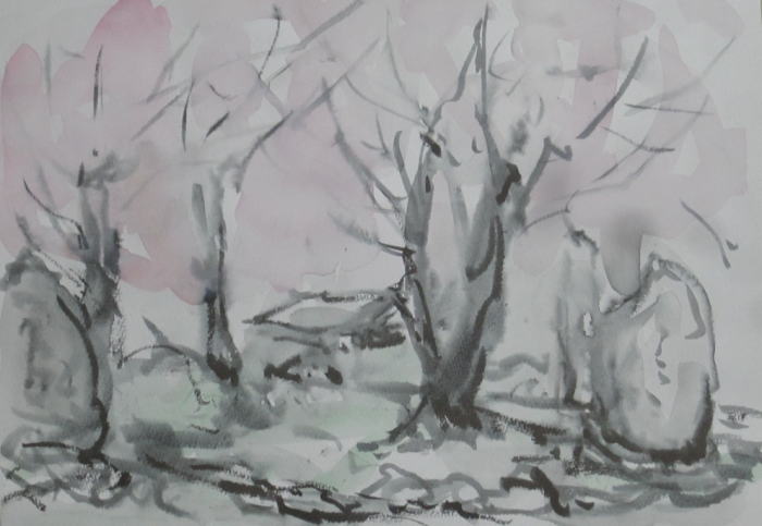 hs-731 両所神社の桜花 2023.04.16 (筆ペン、水彩)