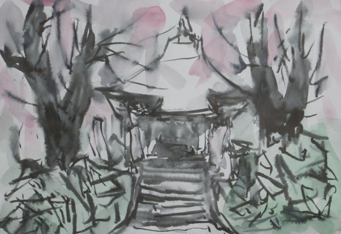 hs-732 黒鳥観音堂の桜花 2023.04.16 (筆ペン、水彩)