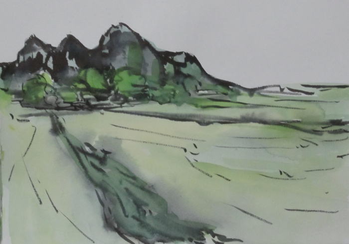 s-779 実りの田園風景 2023.09.15 (筆ペン、水彩)