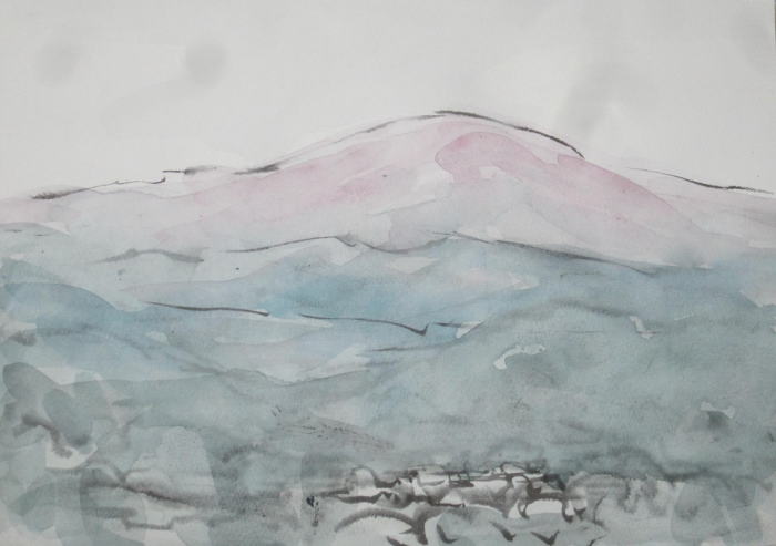hs-791 色づく月山 2023.10.18 (筆ペン、水彩)