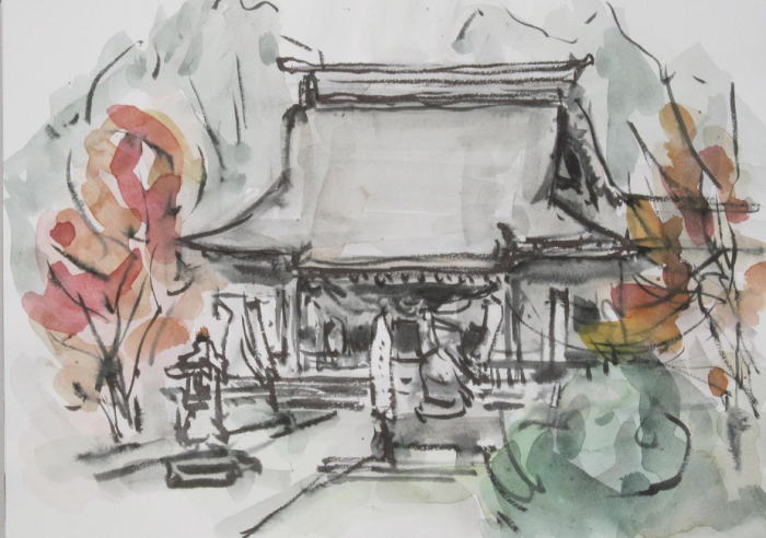 hs-798 秋の戸澤神社 2023.11.12 (筆ペン、水彩)