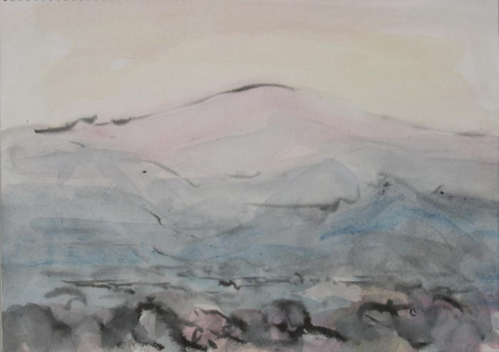 s-800 月山夕暮れ時 2023.11.16 (筆ペン、水彩)