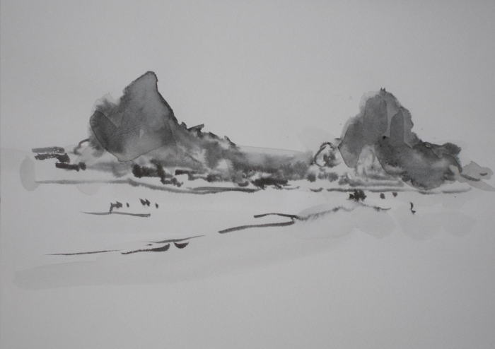 hs-816 雪止んで 2024.01.12 (筆ペン、水彩)