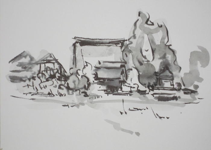 hs-817 雪止んで 2024.01.16 (筆ペン、水彩