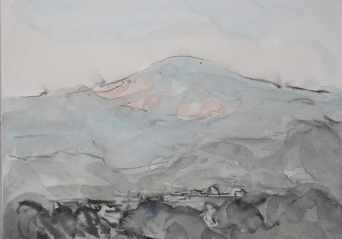 hs-818 残照月山風景 2024.01.23 (筆ペン、水彩)