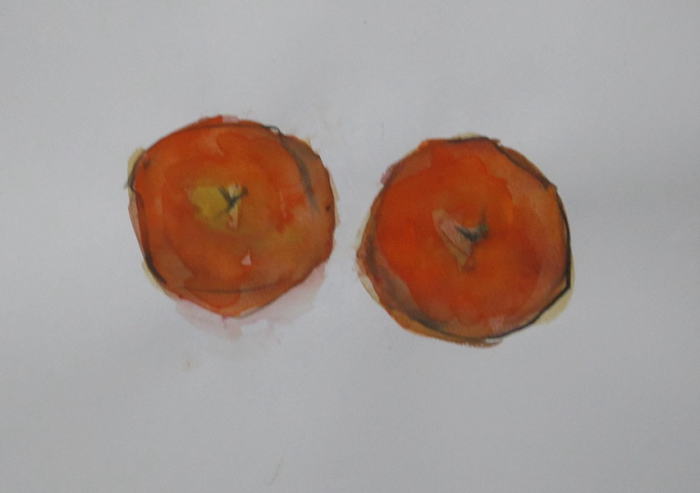 お彼岸に知人からいただいた甘柿。そのまま食するのは勿体ないので、自分なりのスケッチ。