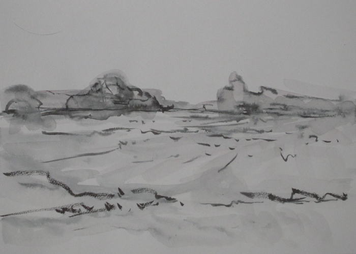 hs-872 雪止んで 2024.12.20 (筆ペン、水彩)