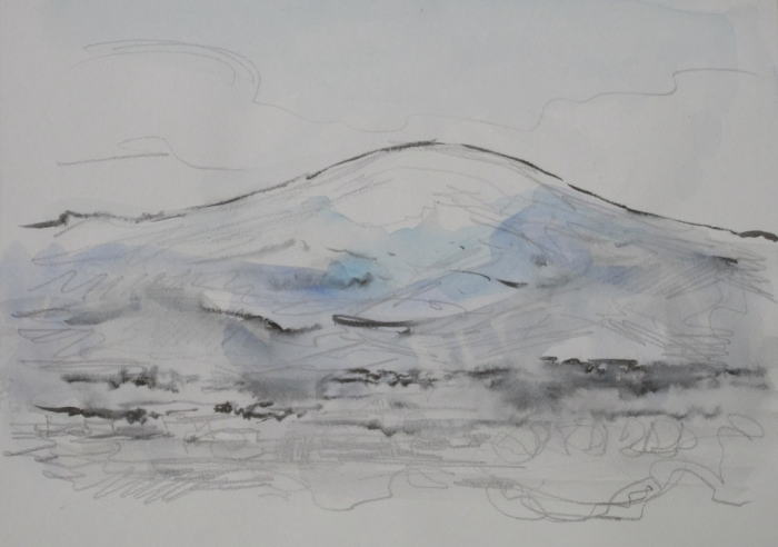hs-893 春近き月山風景 2025.03.21 (筆ペン、水彩)