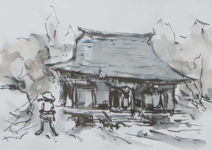 hs-944 若松観音堂雪景色 2025.12.23 (水彩、筆ペン)