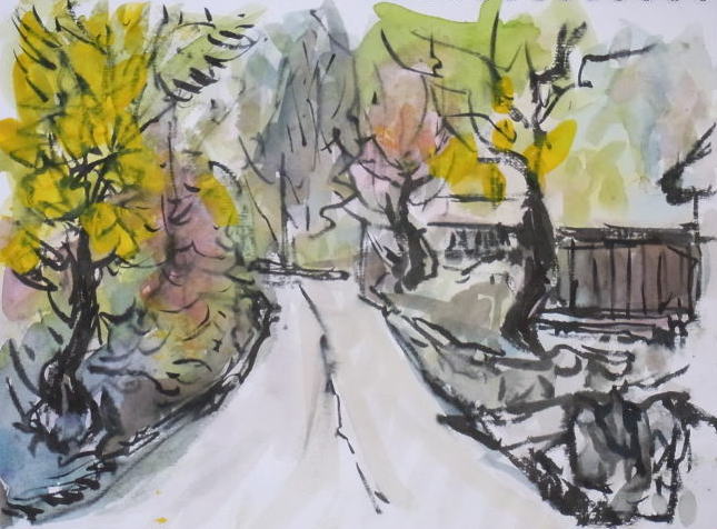 坂道のある秋景 |