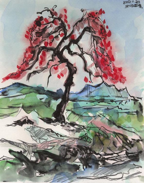 河北町沢畑・柿老木の風景 |