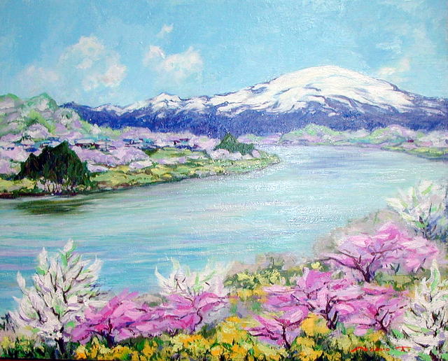 @t‚TŒŽ‰{AŽRŒ`‚̓TƒNƒ‰ƒ“ƒ{A“A؂̉ԂªˆêÄ‚Éç‚«—‚ê‚éB‰“‚‚ÉŒŽŽR‚ª”’‚¢Žcá‚ðŒ©‚¹‚éB