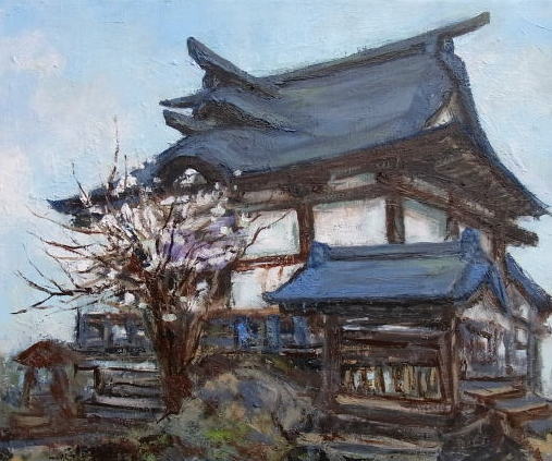sp-023 梅花咲く碁点文殊院 F8 2011.06.06 (油彩画)