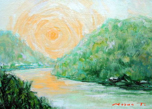 | su-9 暑い一日の終わり(最上峡) F4 2003.7.23(油彩画) |