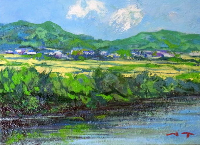 au-41 初秋最上川風景 F4 2012.10.20 (油彩画)
